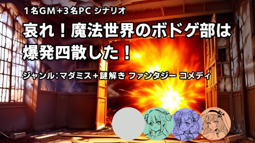 ここは魔法と科学技術の混じり合う世界。 そして、ここは、未来の前途ある若者を育成する機関である学校。 その片隅に佇むボードゲーム部。 しかし、その部室は理不尽にも爆発四散した!どうなっちゃうの~?!